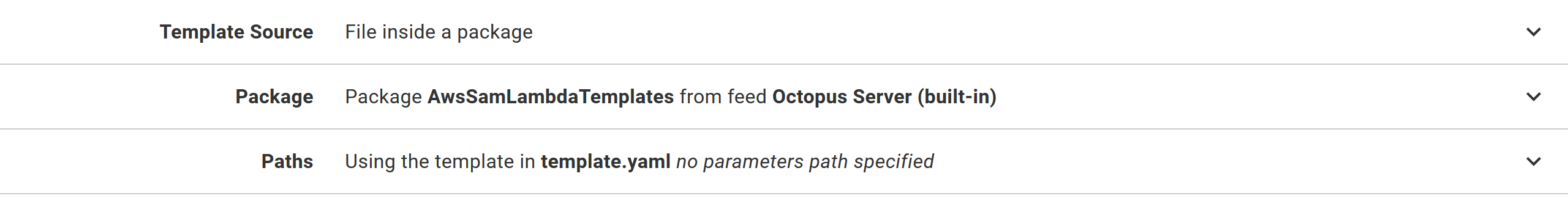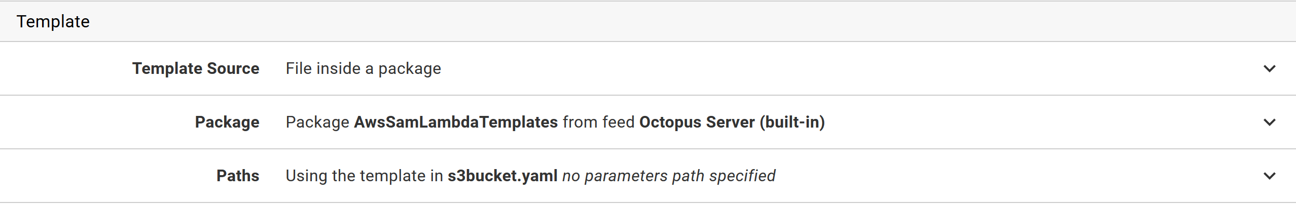 Because we have used variables for the CodeUri field, Octopus will take care of pointing the template to the correct S3 file. In this way, we’ve replicated the second piece of functionality provided by the sam package command which would normally generate a processed YAML file with the updated S3 location.