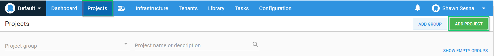 To create a new project, click on the Projects tab, and click the ADD PROJECT button:
