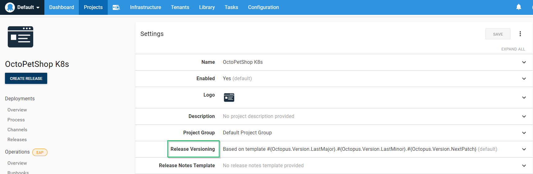 The last part to do before we’re ready to create a release is to change the release numbering to match our build version. This will allow us to tie a release directly to the build that created it. To do this, click on the Settings tab: