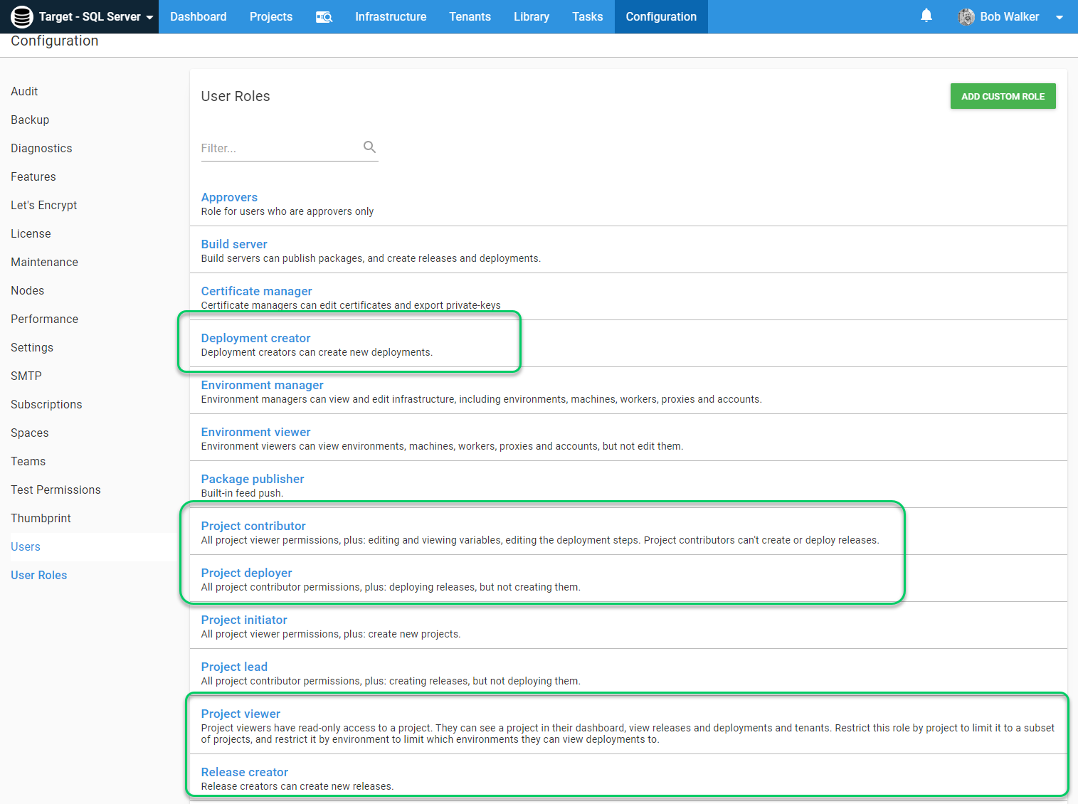 - Deployment Creator: People assigned to this role can kick off deployments. In this example, DBAs will be assigned this role for