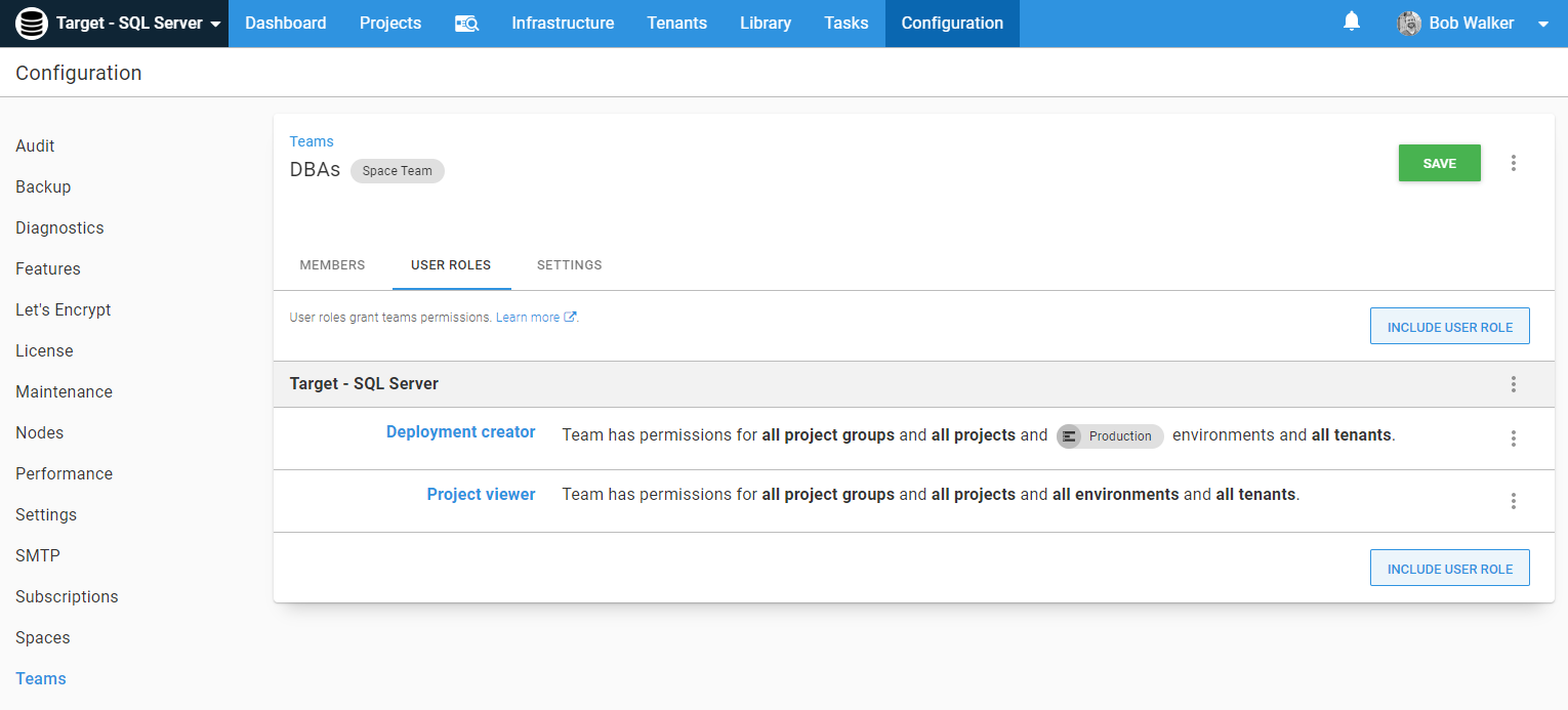 - Users and teams to only allow DBAs permission to kick off production deployments, but still enable developers to deploy to lower environments.
