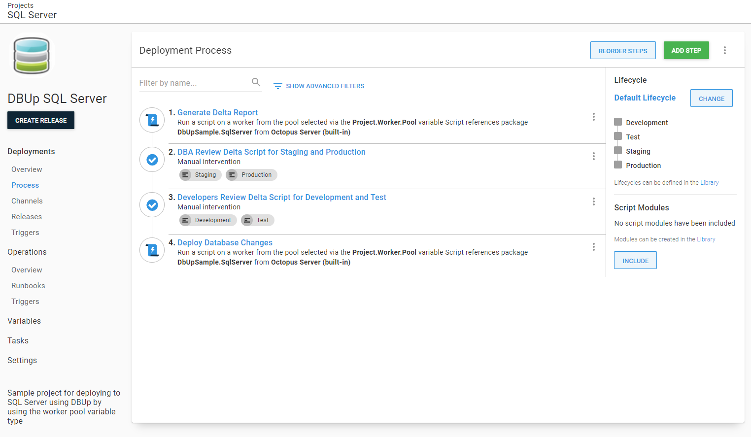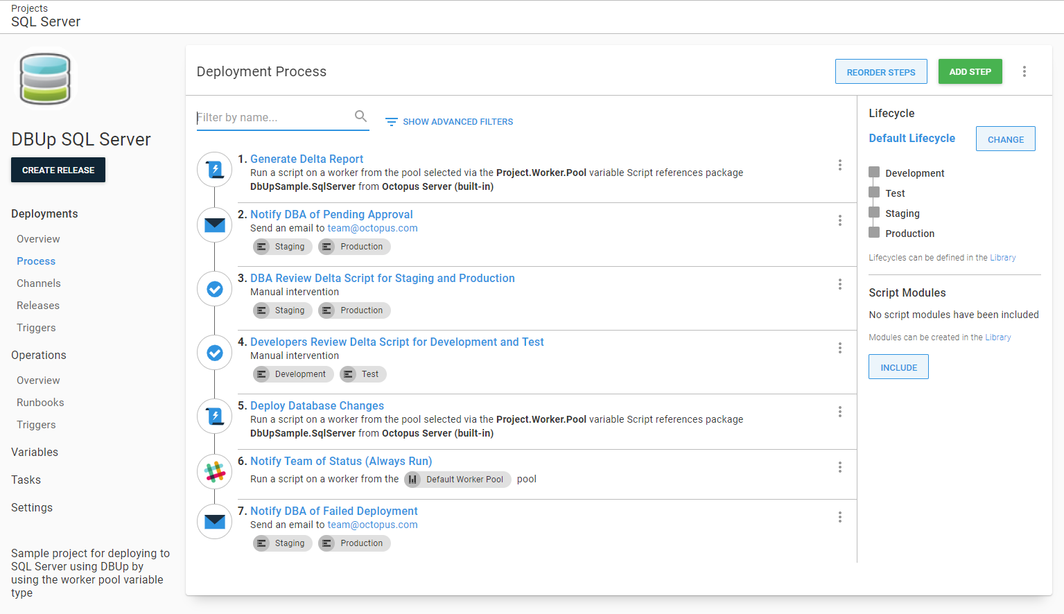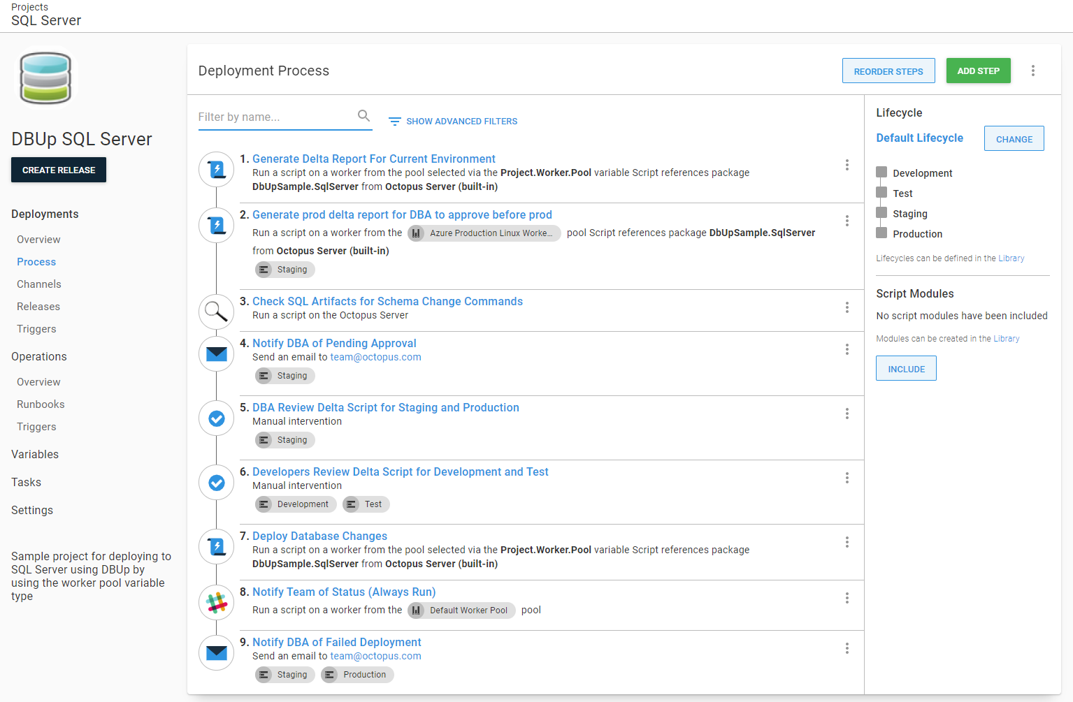 In this article, I create an automated database deployment process from scratch. Each section builds on the previous section by leveraging a new feature in Octopus Deploy. I realize it is easy to lose track of each feature, so to make things easier, here is a list of features this article will use: