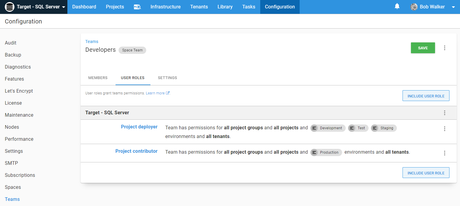Separation of concerns is a common practice. The person who made the code change shouldn’t be the person who approved it or deployed it to Production. Note, developers should be able to deploy to Development and Test, and in Octopus Deploy, it is possible to configure the teams to support this.