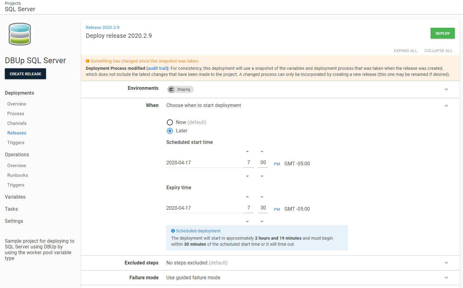 That being said, don’t expect the DBA to schedule deployment and not be online when you start out. It will take quite a number of deployments before they trust the team, trust the process, and trust themselves to understand the tool.