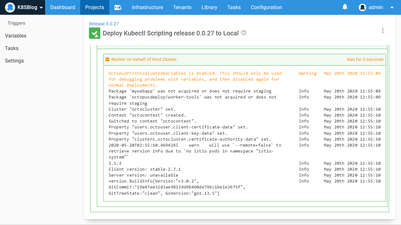This post looked at some useful debugging techniques in Octopus and provided example scripts that take advantage of package variables and the Worker tools Docker images to highlight some of the possibilities of using Octopus to automate Kubernetes clusters.