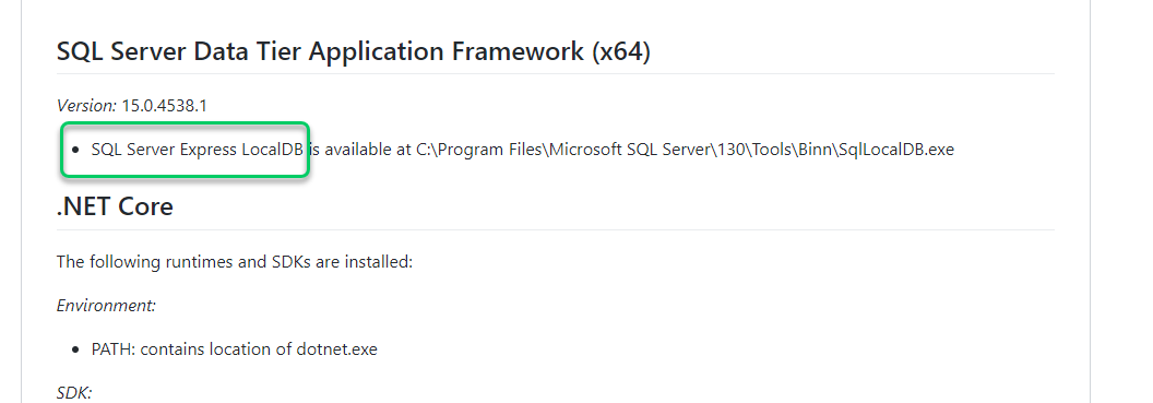The documentation for the build database package cmdlet said it uses LocalDB as the default database. On a whim, I did a quick find on the installed app list. Lo and behold, localdb is part of the pre-installed apps: