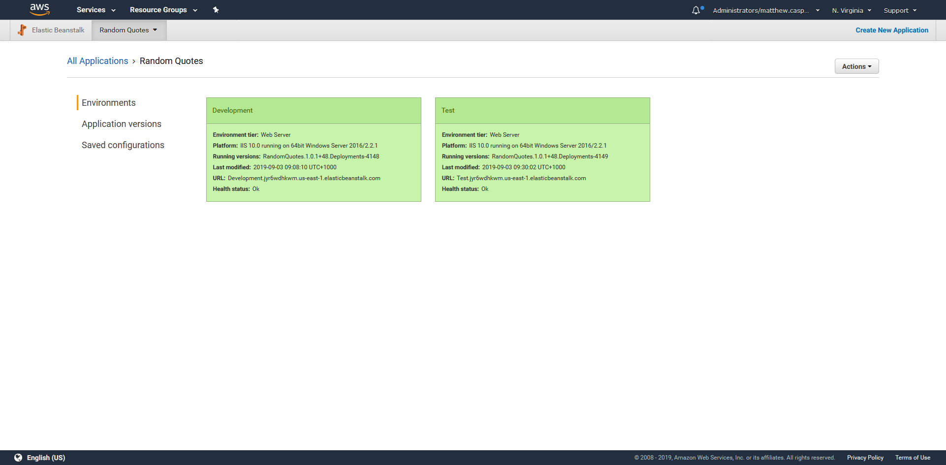 We now need to create the Beanstalk application and environments. There are many ways to create the Beanstalk infrastructure, but for the sake of simplicity, we’ve created it here via the AWS console.