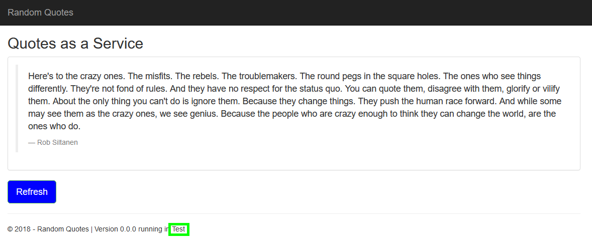 The sample application we are deploying is called Random Quotes. This is a simple .NET Core web application, which hasn’t necessarily been designed for deployment to Beanstalk.