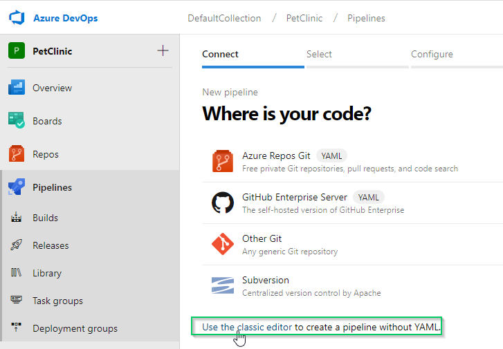 Now that we’ve done the prerequisite work of installing Maven on the build agent, tweaked a couple of files, and added Flyway, we can create our build definition.