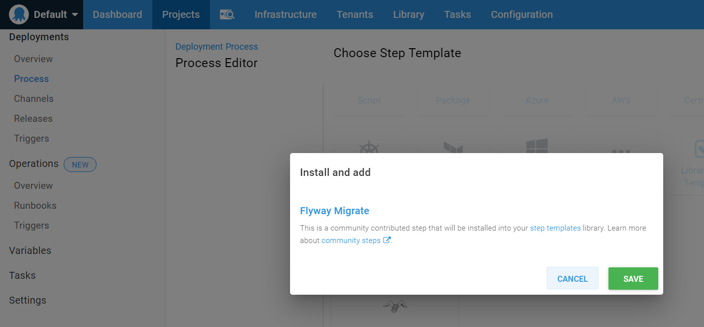 ::: hint At the time of writing, the Deploy a Package step and the Flyway migrate step must be executed on a target. However, a worker friendly version of a Flyway Migrate step is under review. :::