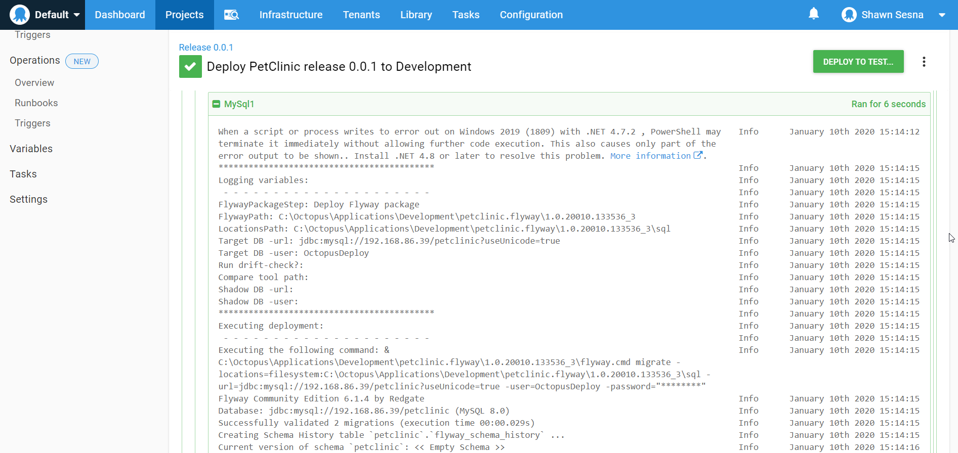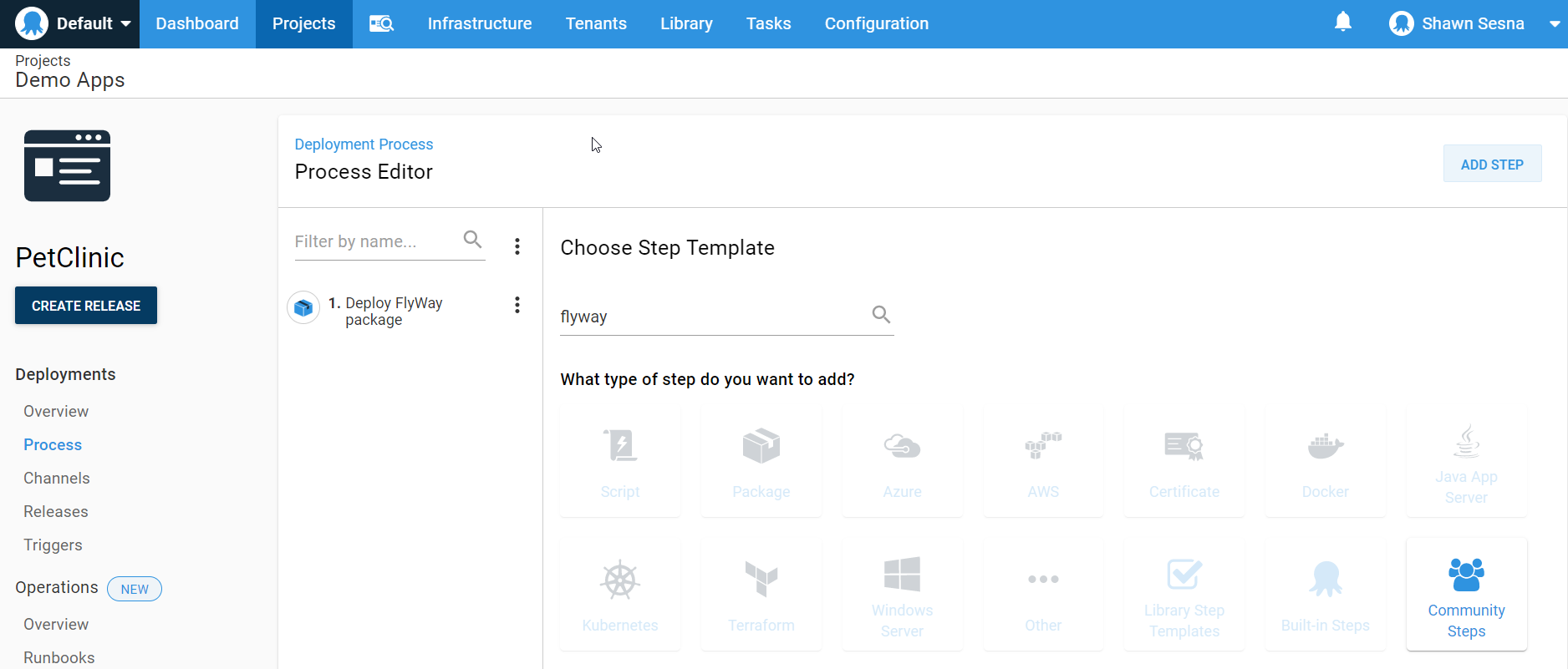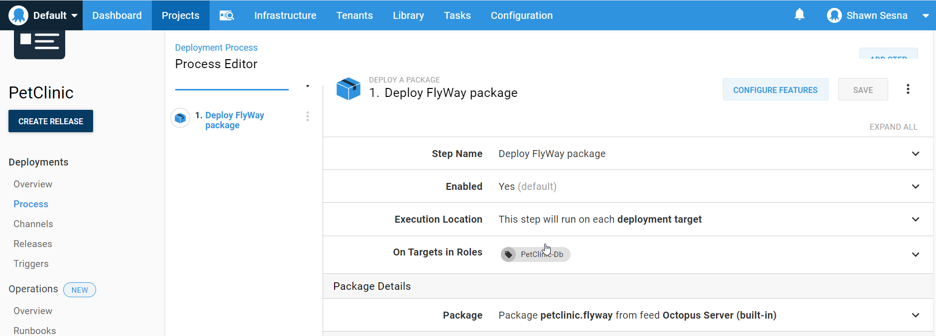 PetClinic-Db(this is what I named the role). - Flyway package step: Use the drop down to select the Deploy Flyway package step.