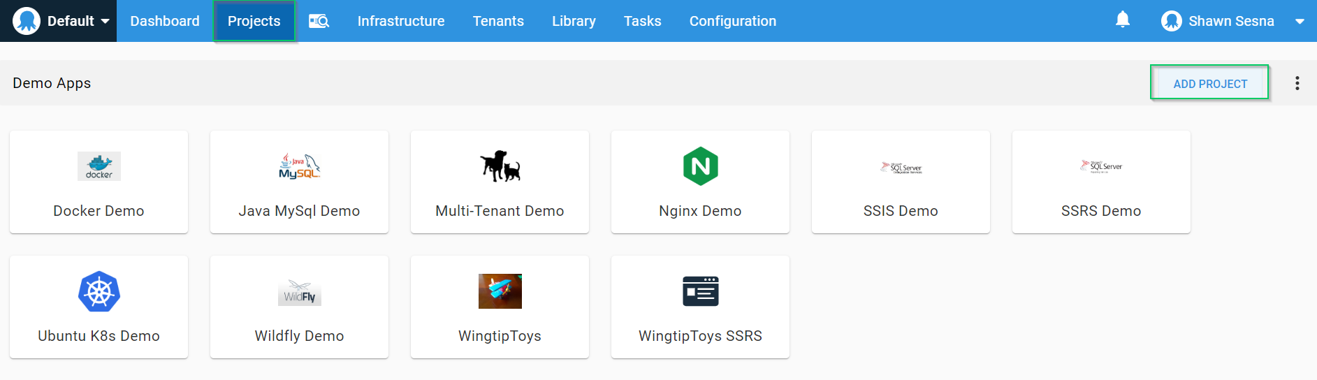 In the Octopus Deploy web portal, click the Projects tab, then click ADD PROJECT: