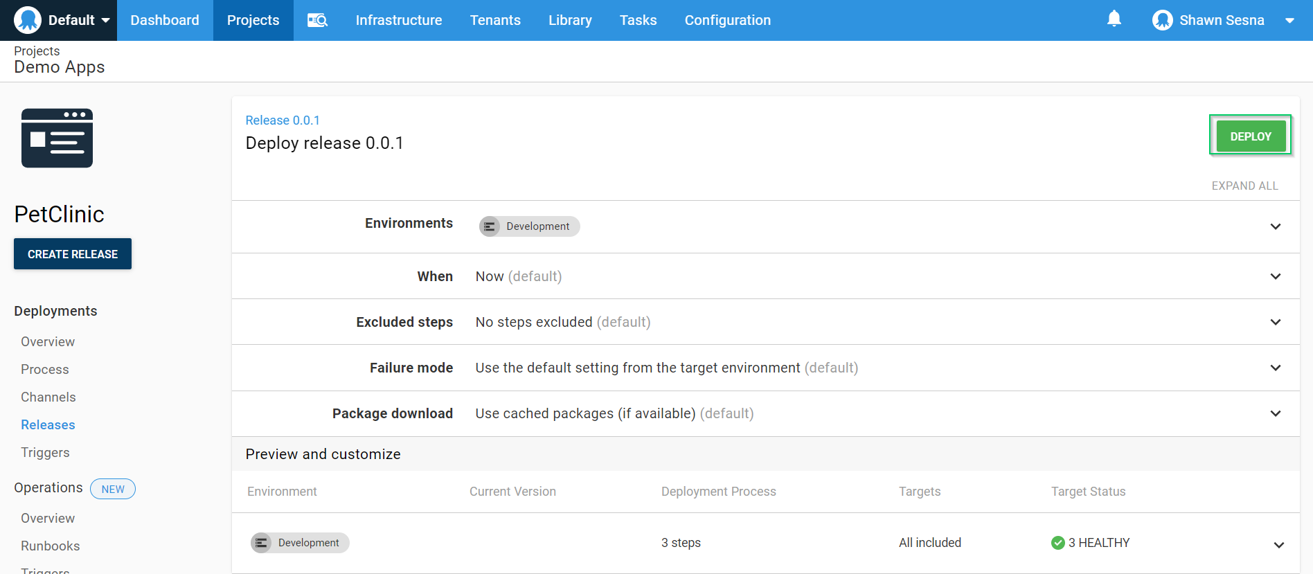 We’re now ready to deploy our application. Click the CREATE RELEASE button: