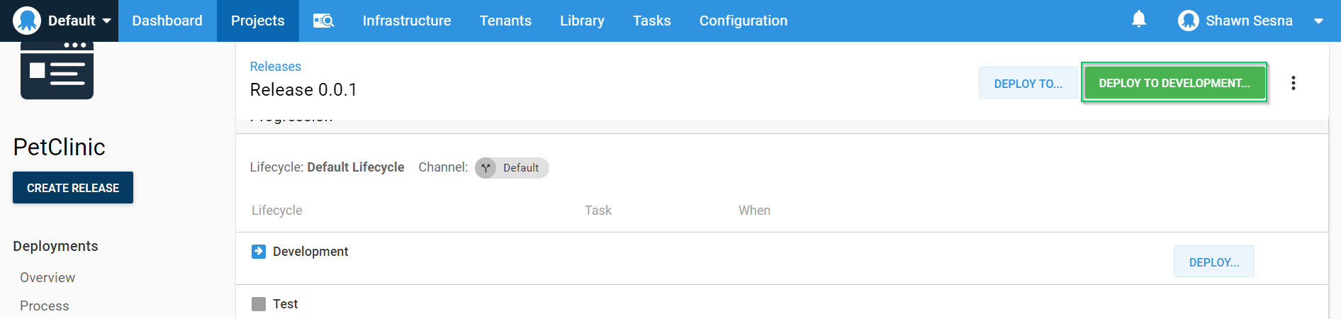 Click DEPLOY TO DEVELOPMENT (replace DEVELOPMENT with whatever you named your environment):
