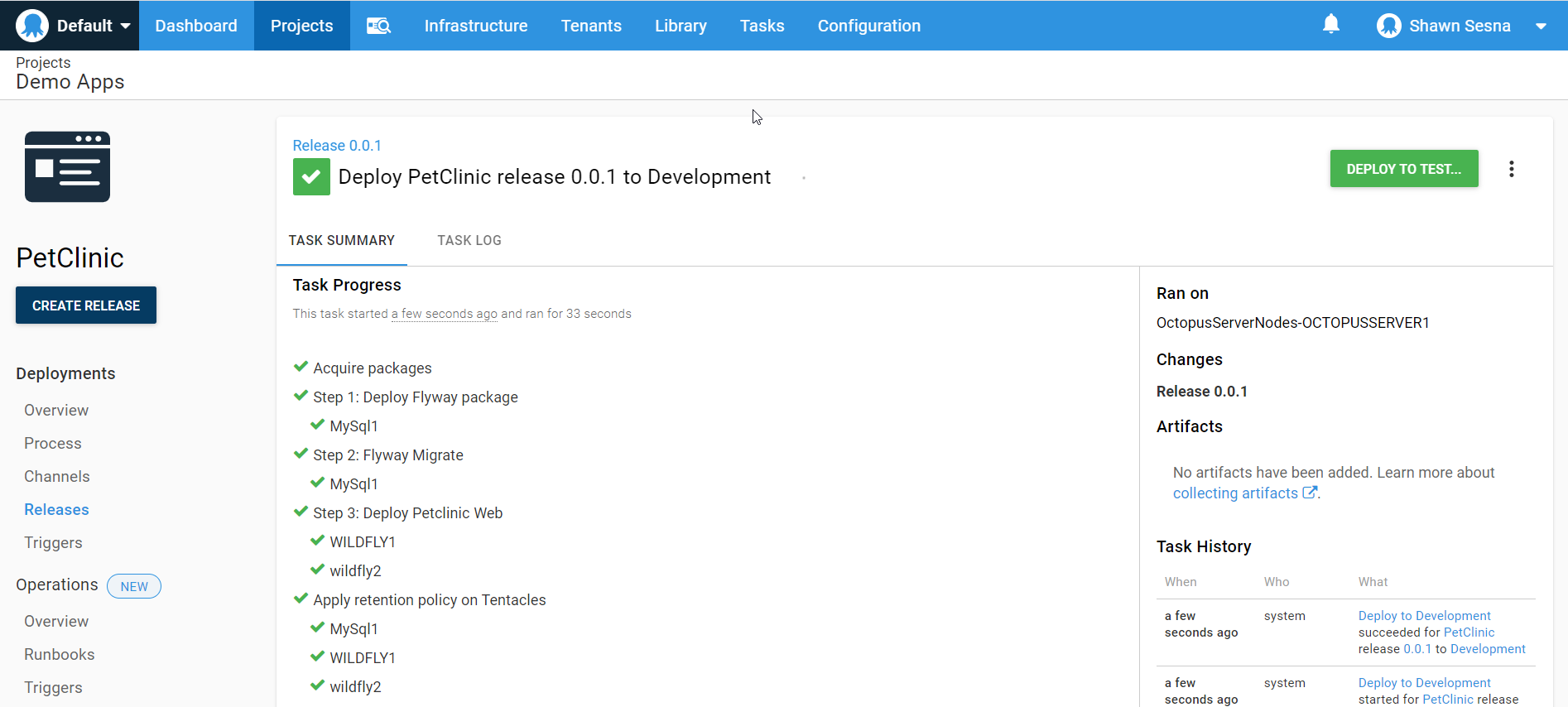 Click the TASK LOG tab to see more detailed information about our deployment: