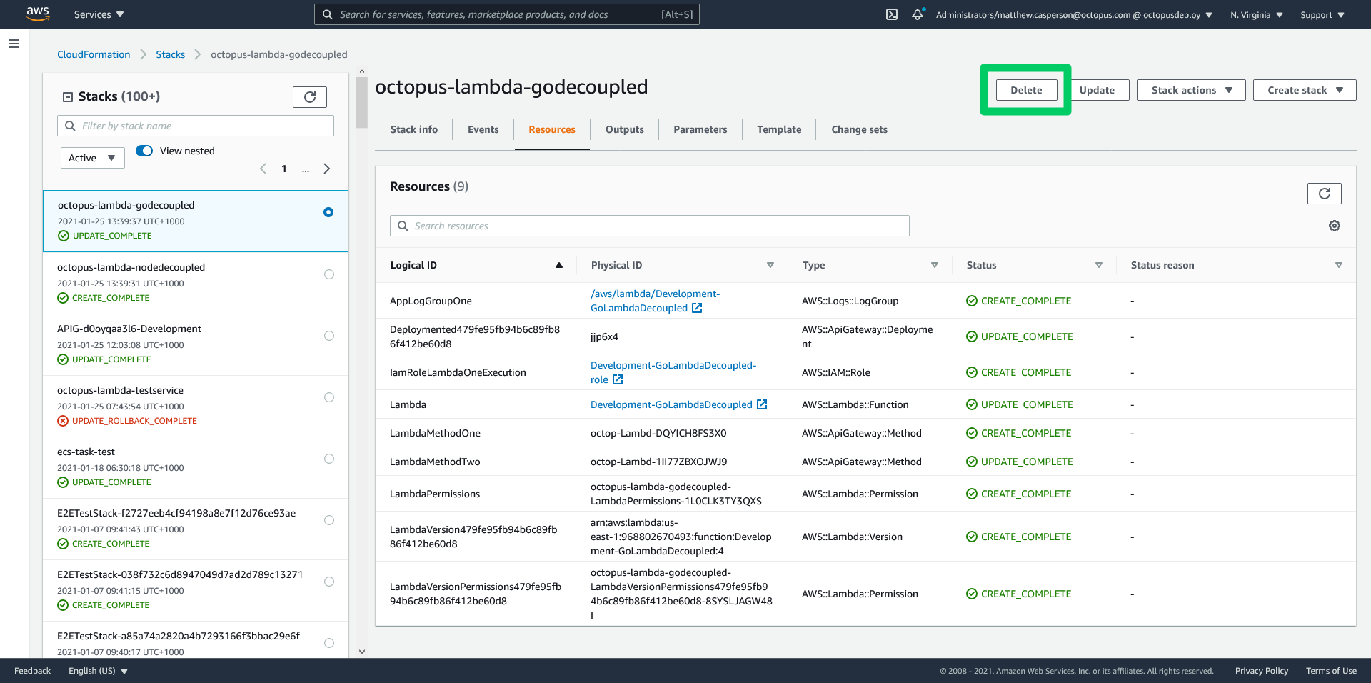 We can also clean up any resources by deleting the associated CloudFormation stack: