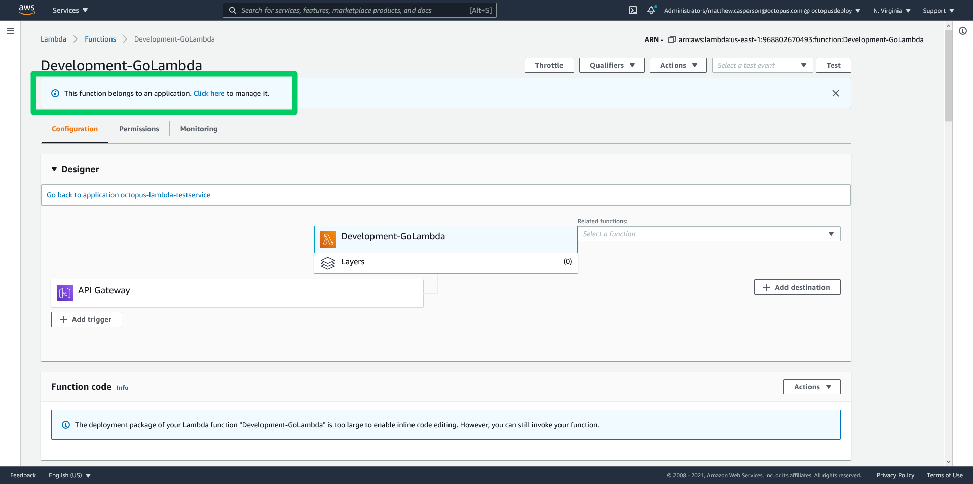 One nice feature we get as a result of deploying our Lambda stack via a CloudFormation template is that it is considered to be an application: