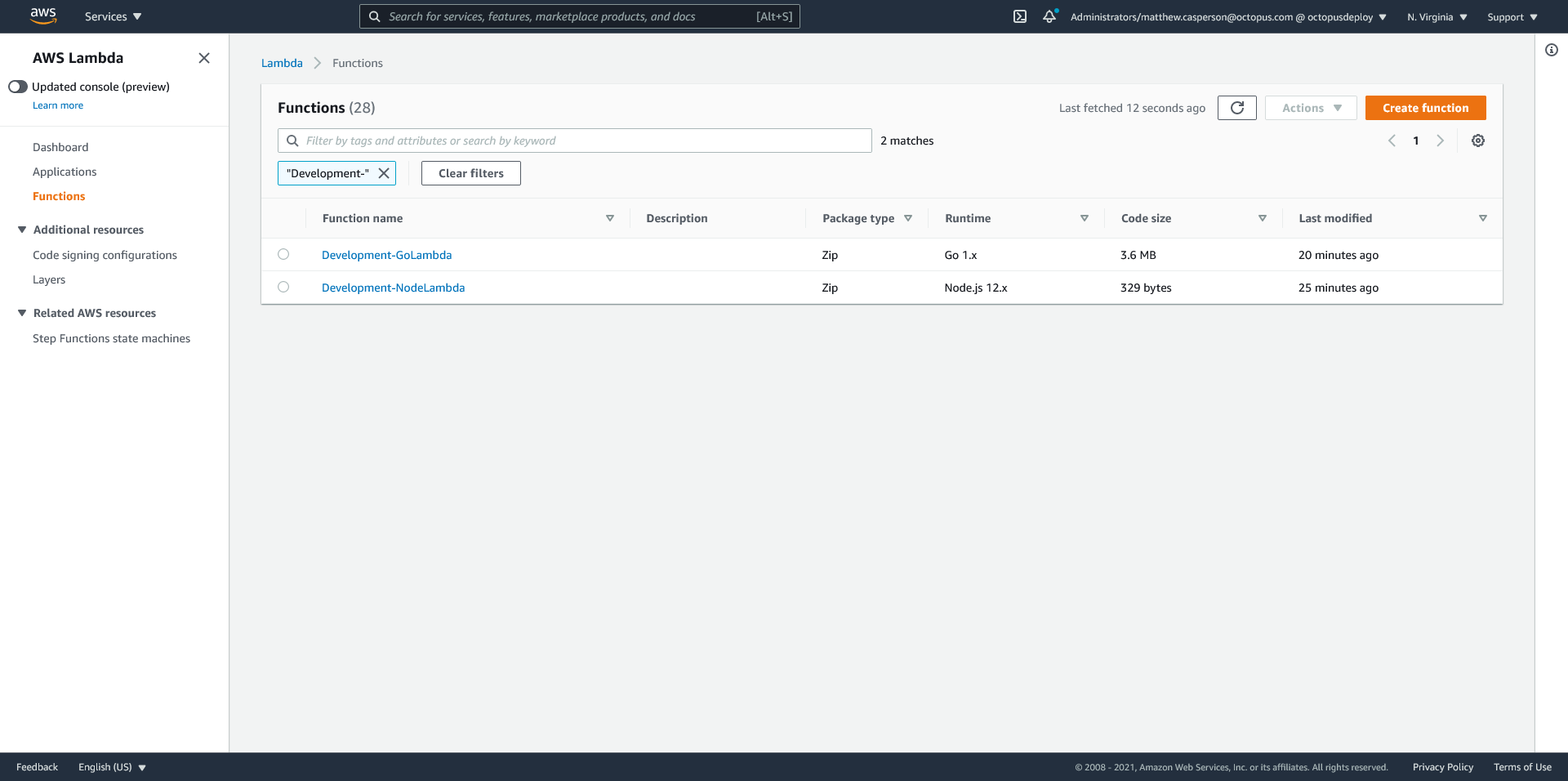 We also have the two Lambdas called Development-GoLambda and Development-NodeLambda: