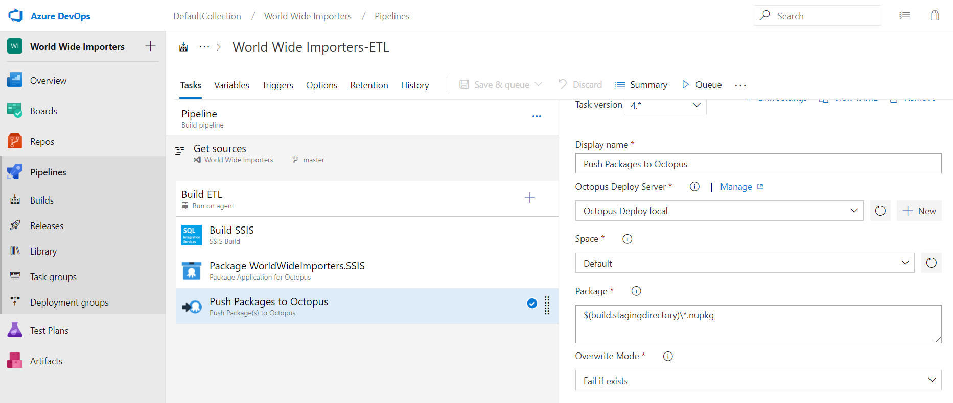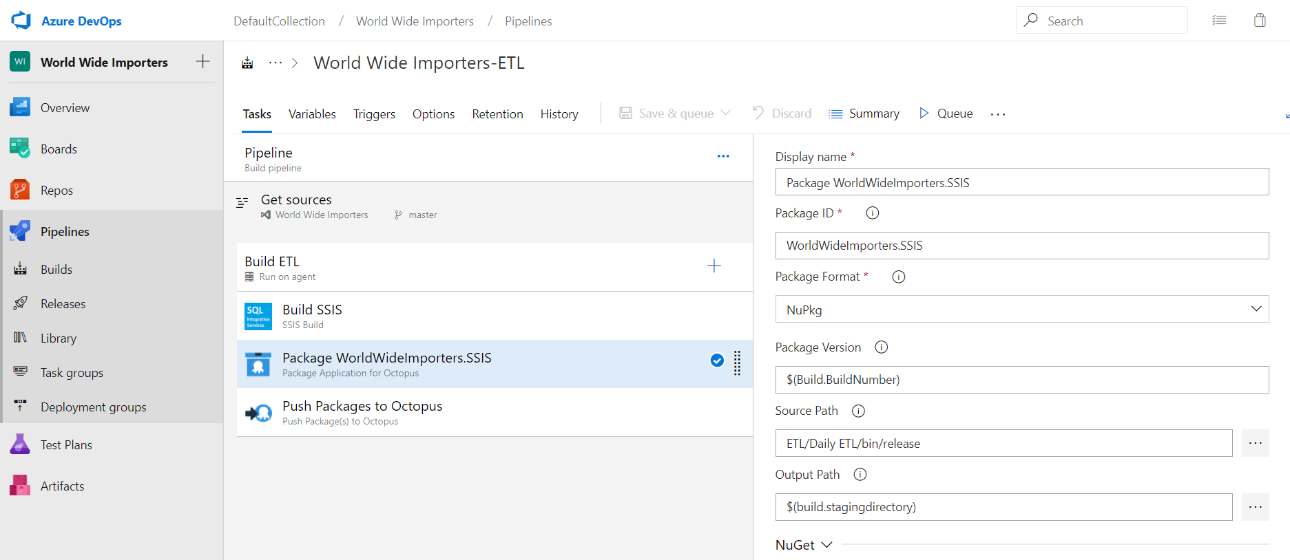 After the SSIS project has been built, it will produce an .ispac file, which contains the necessary components for deployment. .ispac isn’t a standard archive like .zip or .nupkg, so you need an additional step that packages it into a supported format. For ADO, TeamCity, and Jenkins, Octopus Deploy has plugins or extensions that contains steps that do this: