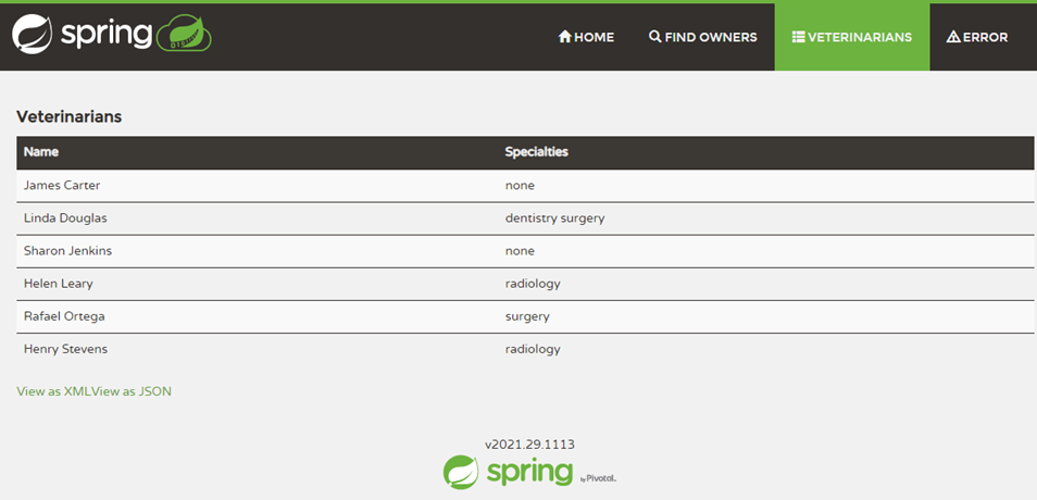 If we navigate to the Payara server, we can see the PetClinic application has been deployed and is pulling data.