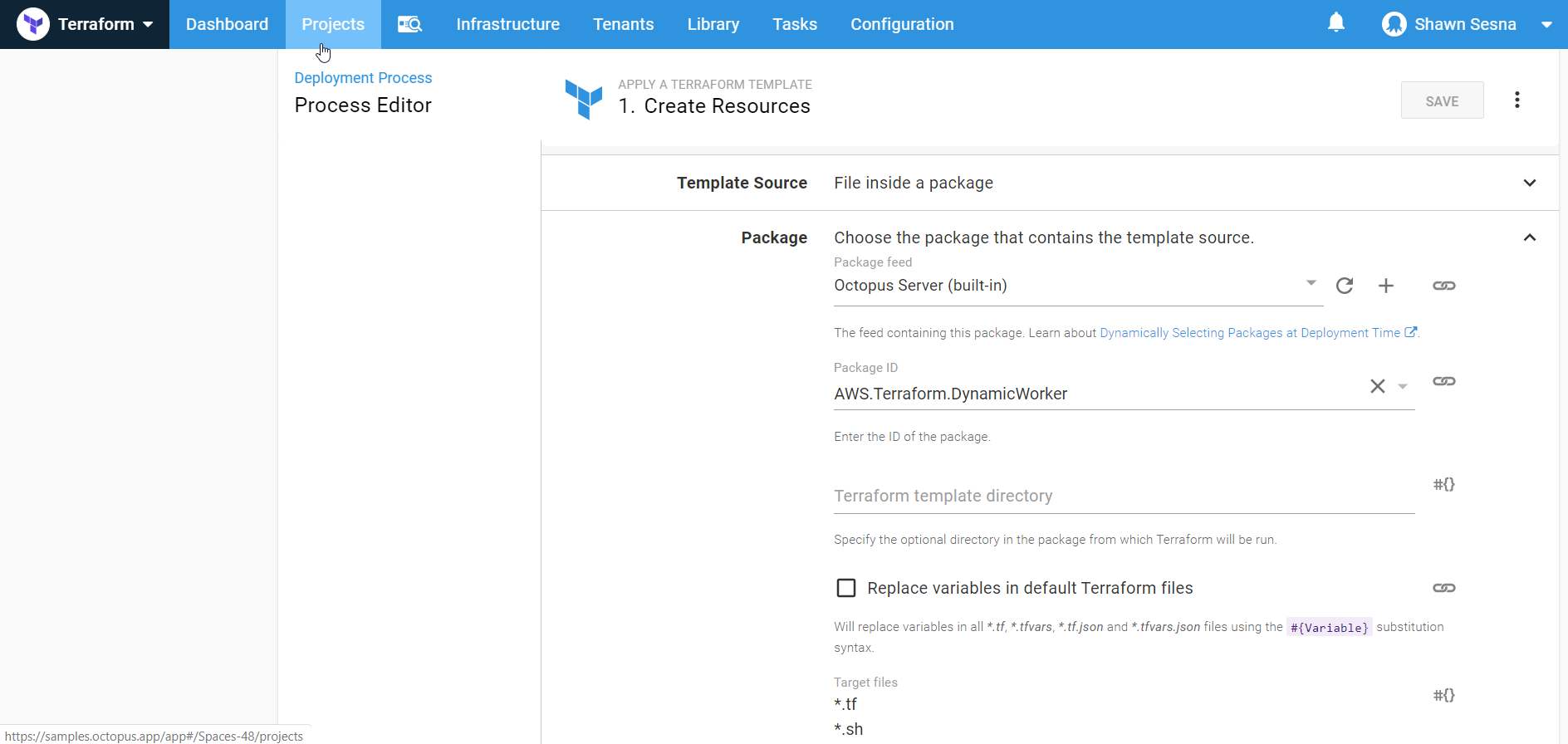 The .tf files in this demonstration uses Terraform v0.11 syntax. At the time of this writing, Octopus Deploy does not support use of Terraform v0.12 without explicitly setting the Octopus.Action.Terraform.CustomTerraformExecutable variable.