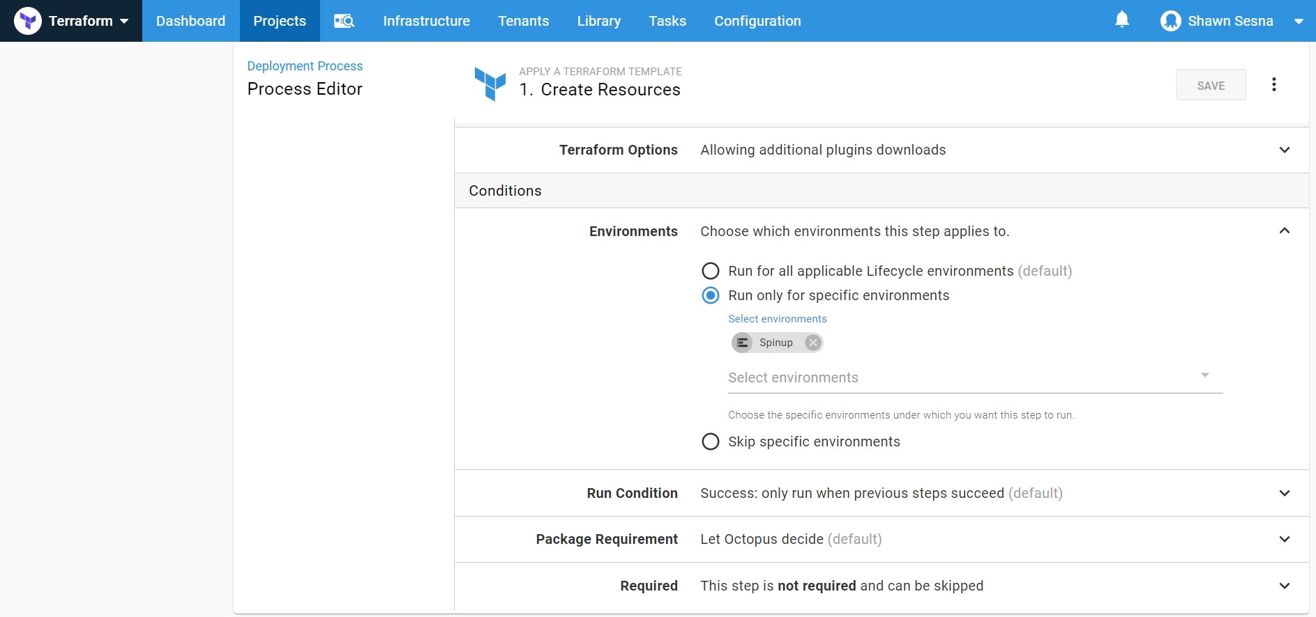 Under Conditions, have this step only execute in the Spinup environment: