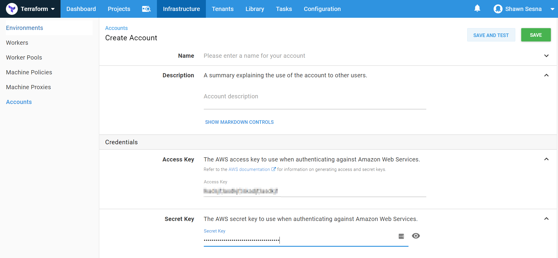 Fill in the Access and Secret keys. Be sure to click SAVE AND TEST to make sure your account works correctly:
