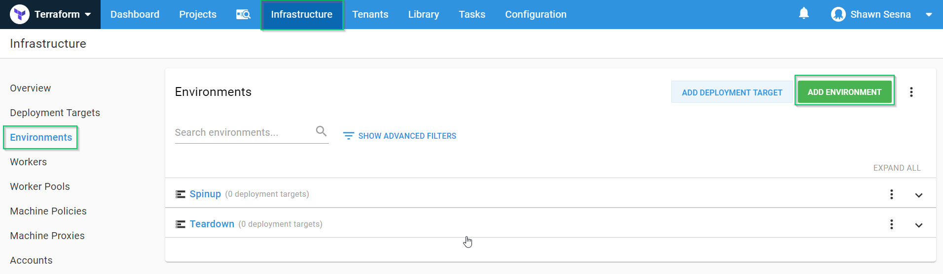 Setting up the Terraform files was by far the hardest part of this entire process. The steps for creating the deployment within Octopus Deploy are quite short. For our purposes, we only need two environments, Spinup and Teardown.