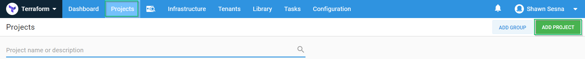 Click {{Projects > ADD PROJECT}}: