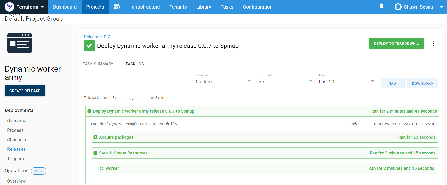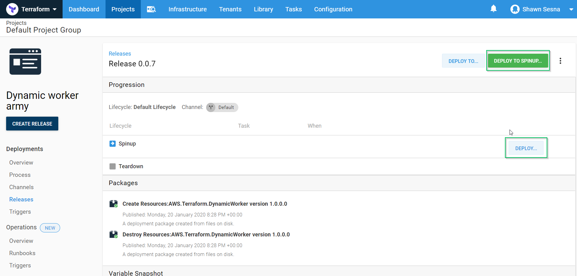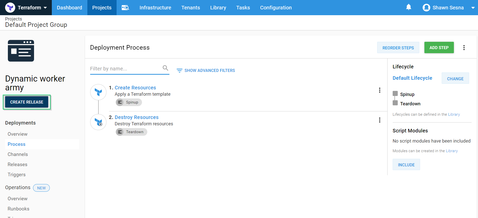 Our deployment process will consist of two steps; a Terraform Apply step, and a Terraform Destroy step.