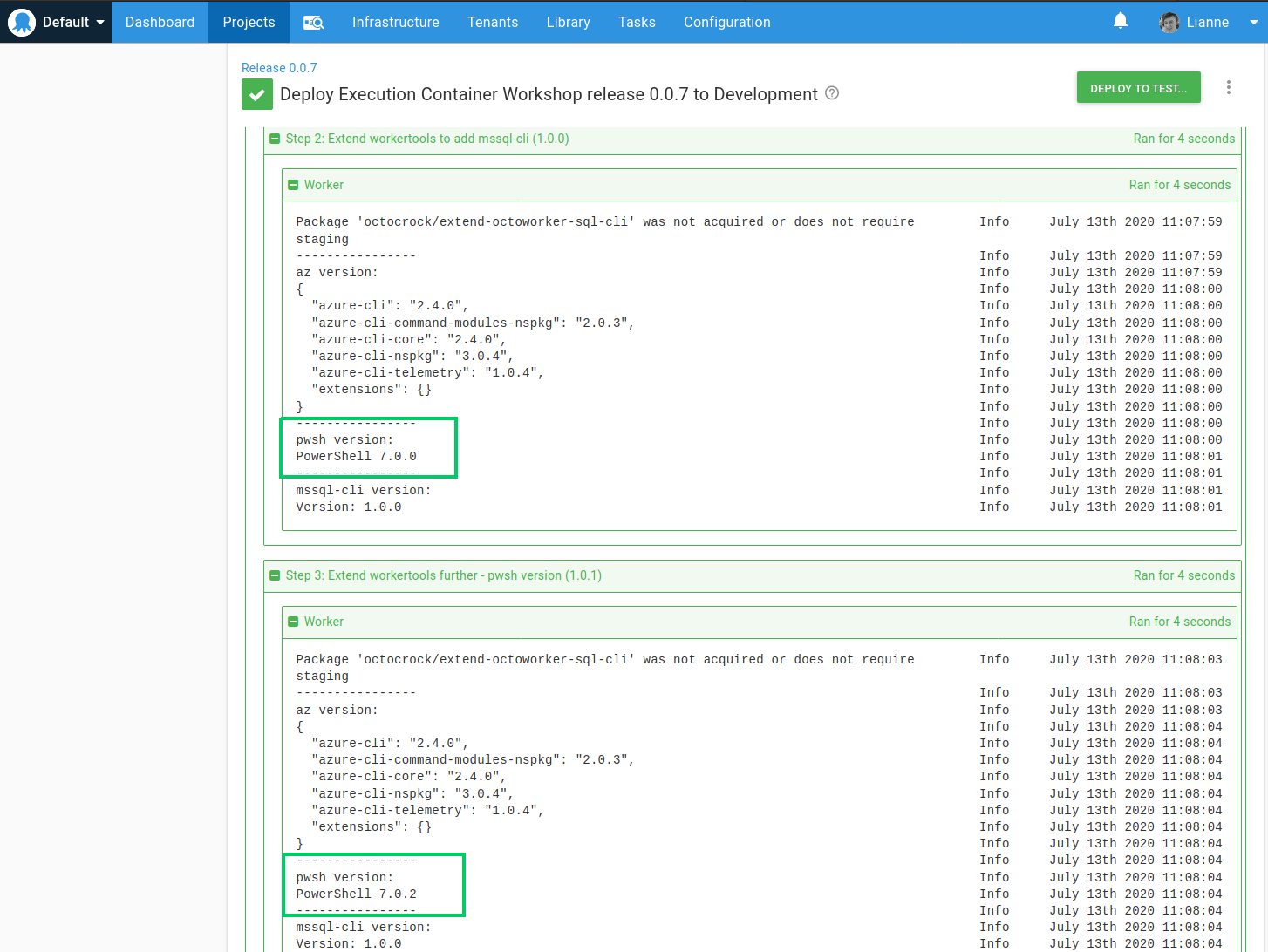 1.0.0: This was the first version of the image to extend theoctopusdeploy/worker-toolsimage by addingmssql-cli.1.0.1: This version extended the image further to set a different version of PowerShell.
