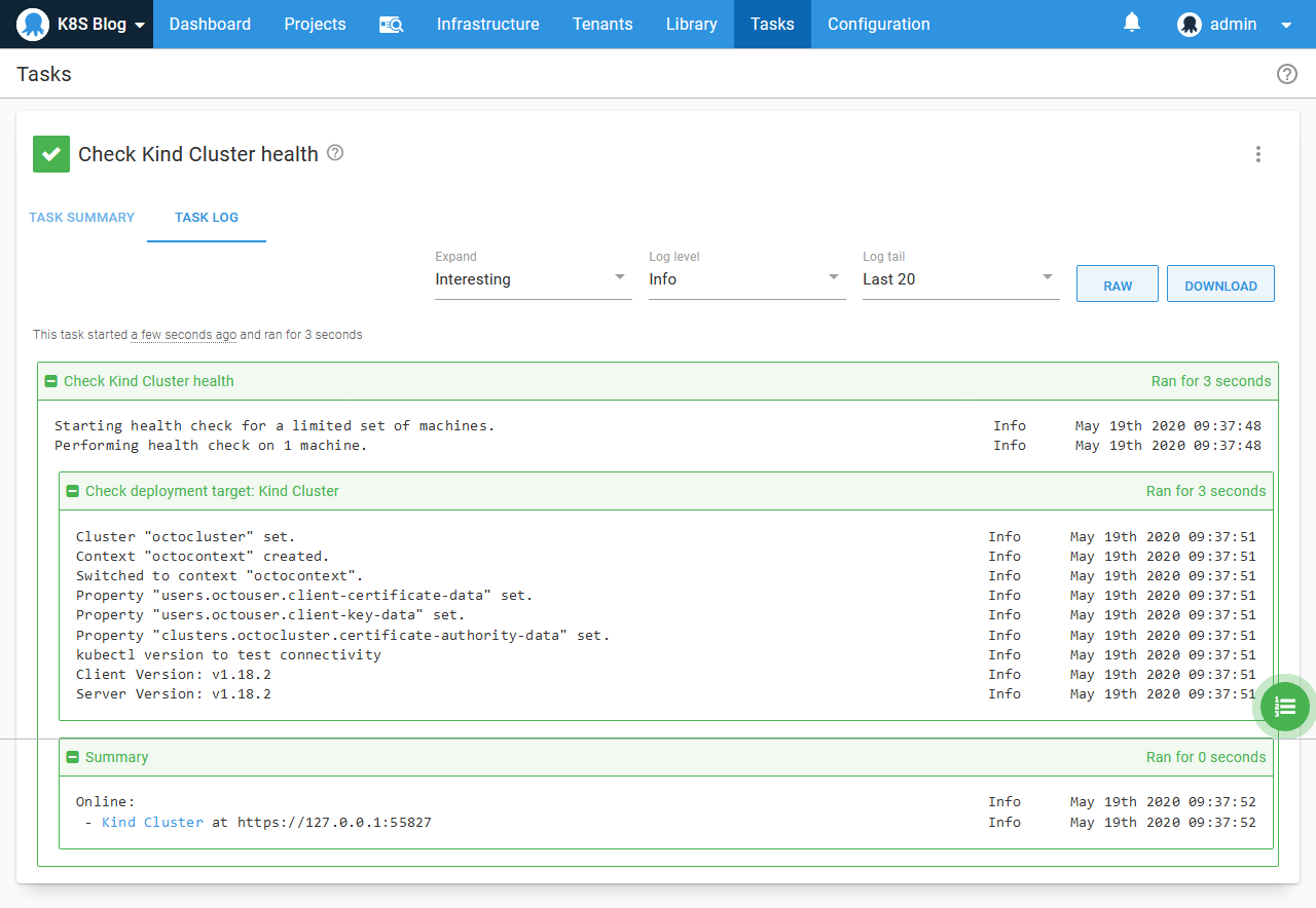 We have now successfully created a local Kubernetes cluster with Kind, extracted the certificates from the Kubernetes configuration file, imported the certificates into Octopus, and created a Kubernetes target in Octopus that connects to our local cluster via a Worker.