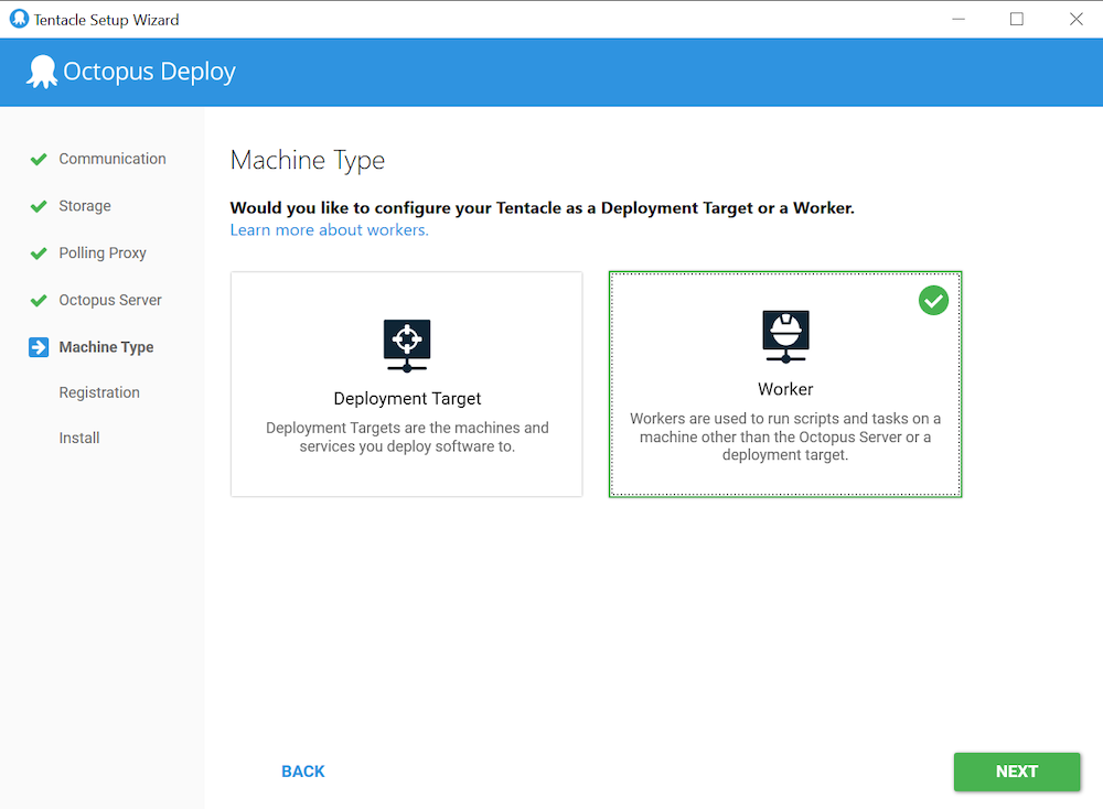 In the screenshots below you can see some of the steps from the Tentacle Manager which configure a Worker: