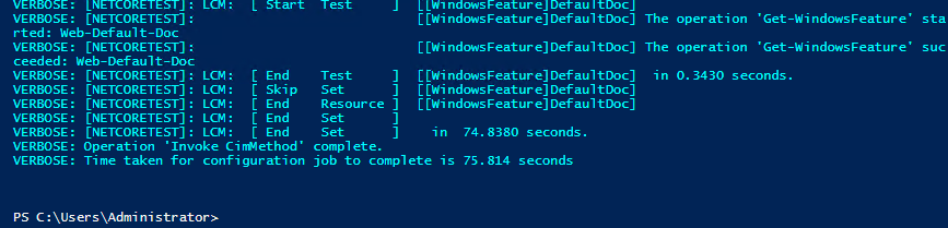 Start-DscConfiguration -Wait -Verbose -Path "C:\DscConfiguration"