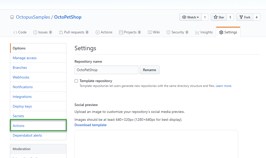 Setting up a local runner is incredibly easy. Kudos to GitHub for making it so simple. After you’ve created your workflow YAML file, make your way over to the Settings in your GitHub repo: