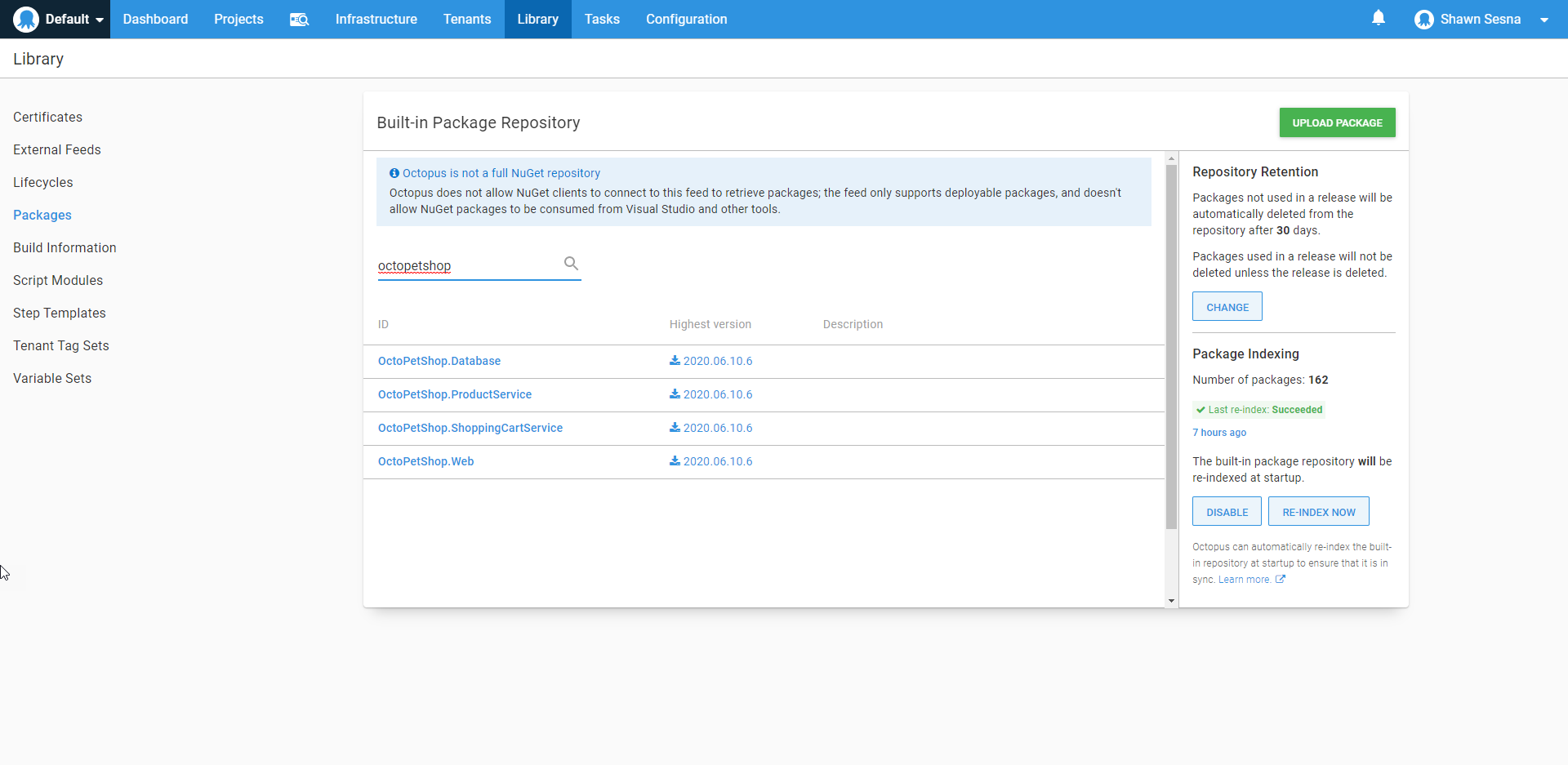 On my local Octopus Deploy instance, I find that this has been pushed: