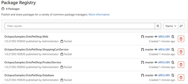 For .NET applications, the most commonly used registry type is NuGet. The .NET core example application, OctoPetShop, works well for this demonstration.