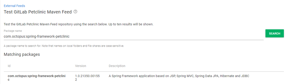 Click SAVE AND TEST to ensure the feed is functional. Enter the name of the package (can be partial):