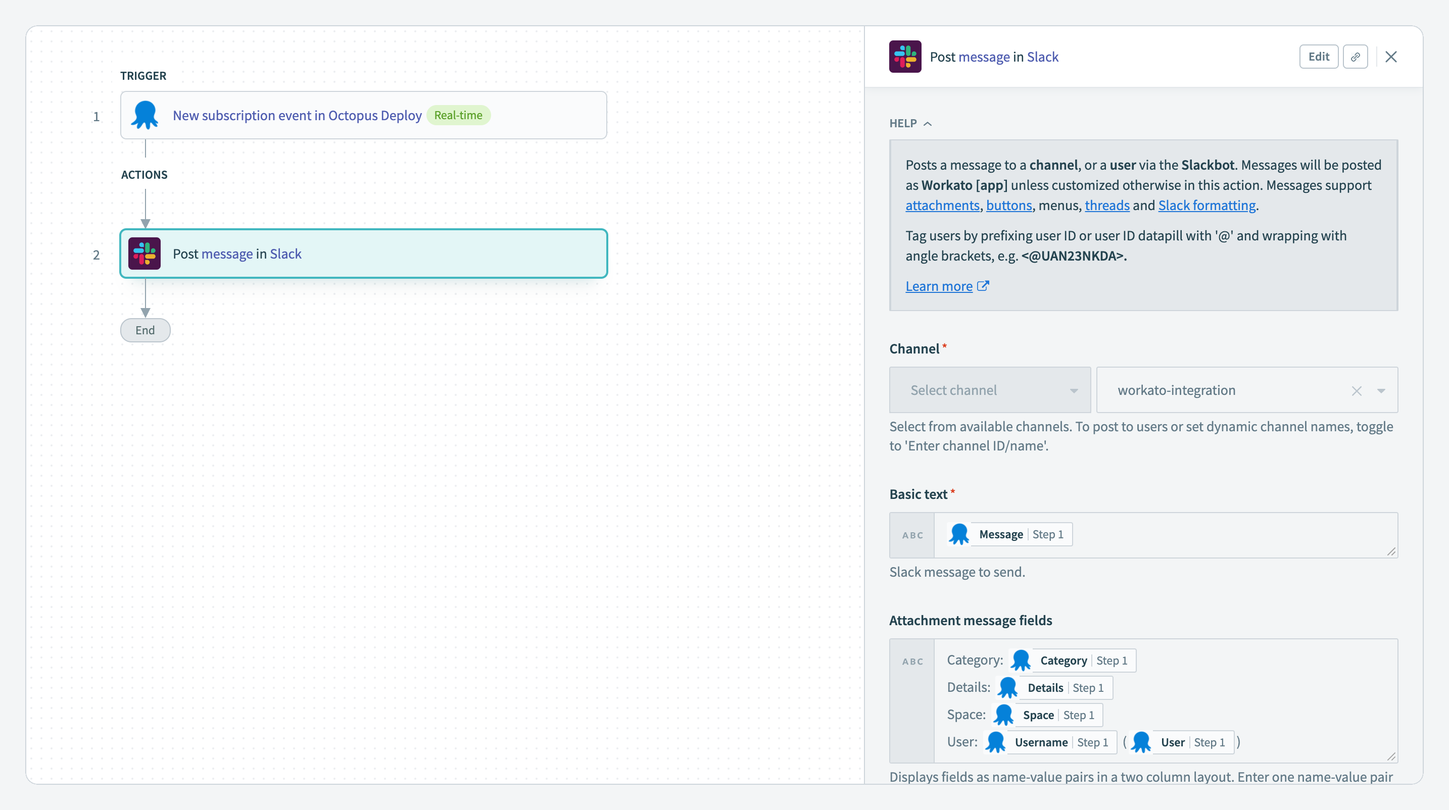 Creating workflows in Workato with the Octopus Deploy connector is simple: