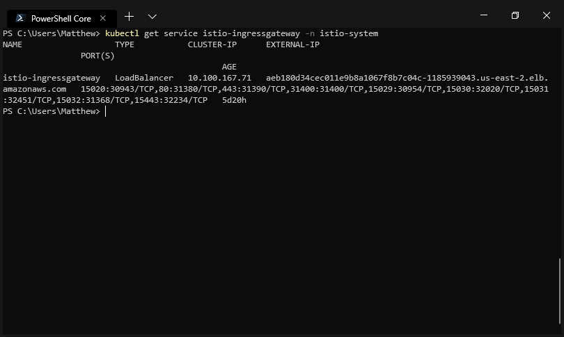 The end result is that we can access the proxy application via the hostname assigned to the istio-ingressgateway load balancer Service.