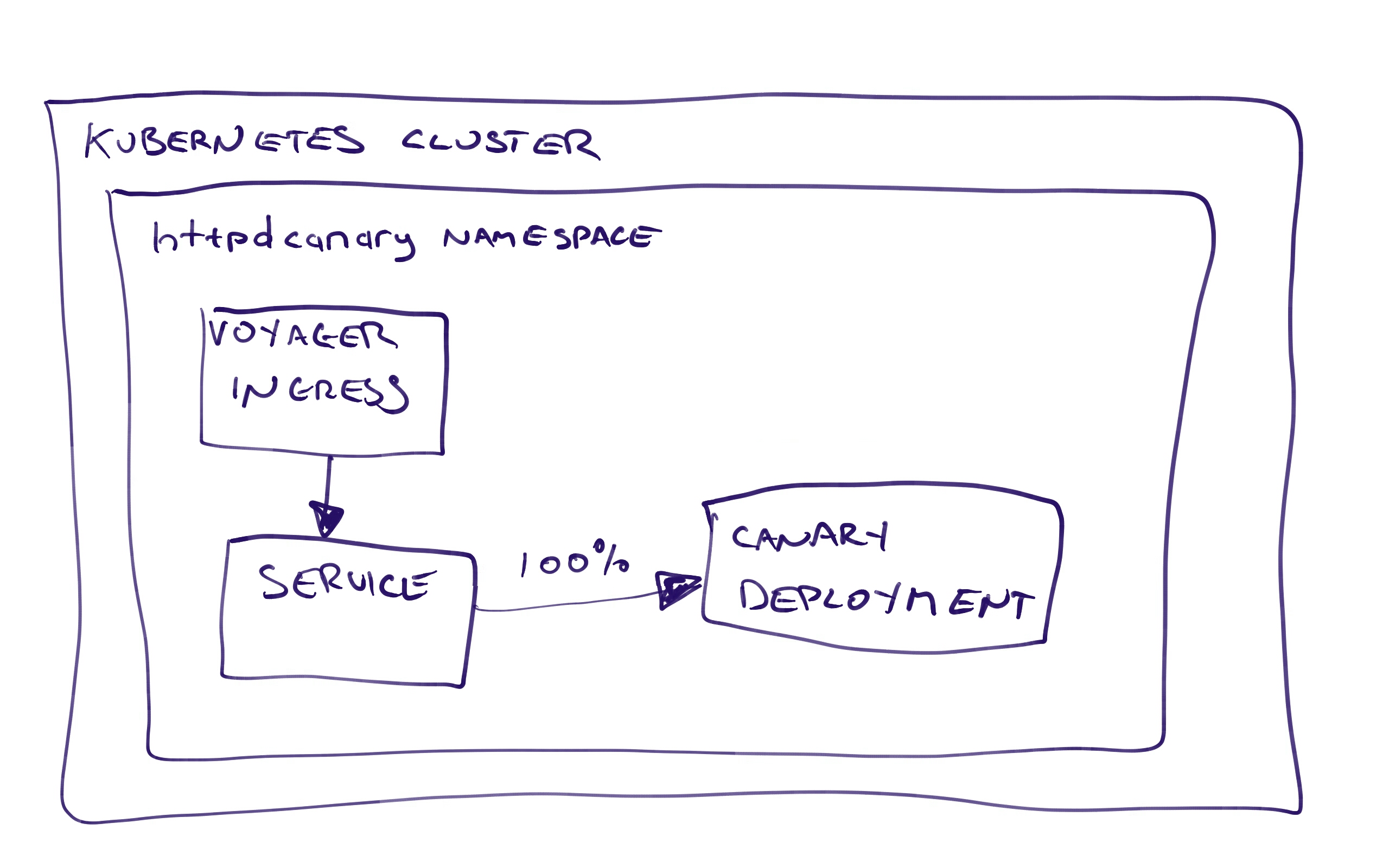 Once we have deployed to the Canary 100% environment, our Kubernetes cluster looks like this: