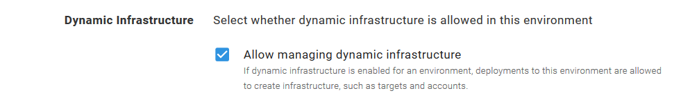 It is important that these environments allow Dynamic Infrastructure, we’ll take advantage of this to create our restricted Kubernetes targets rather than using the administrative one for all deployments.