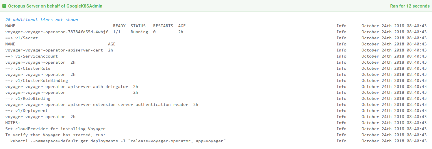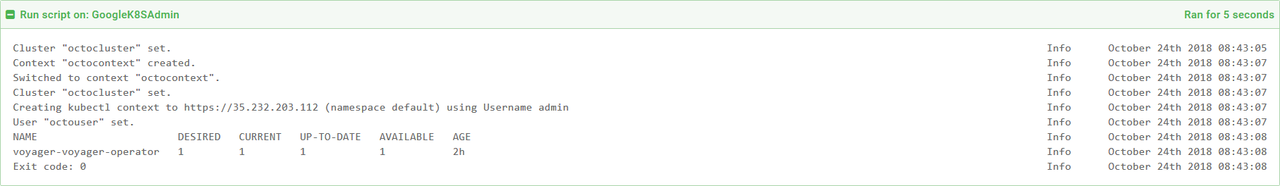 Here I have run the command against the Kubernetes administrative target called GoogleK8SAdmin.