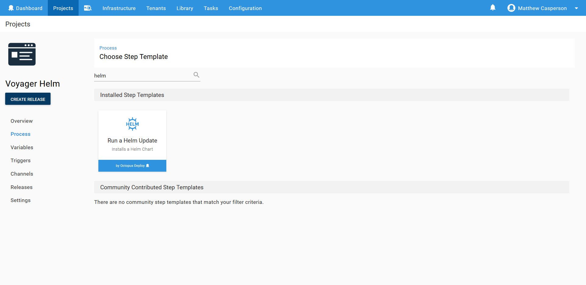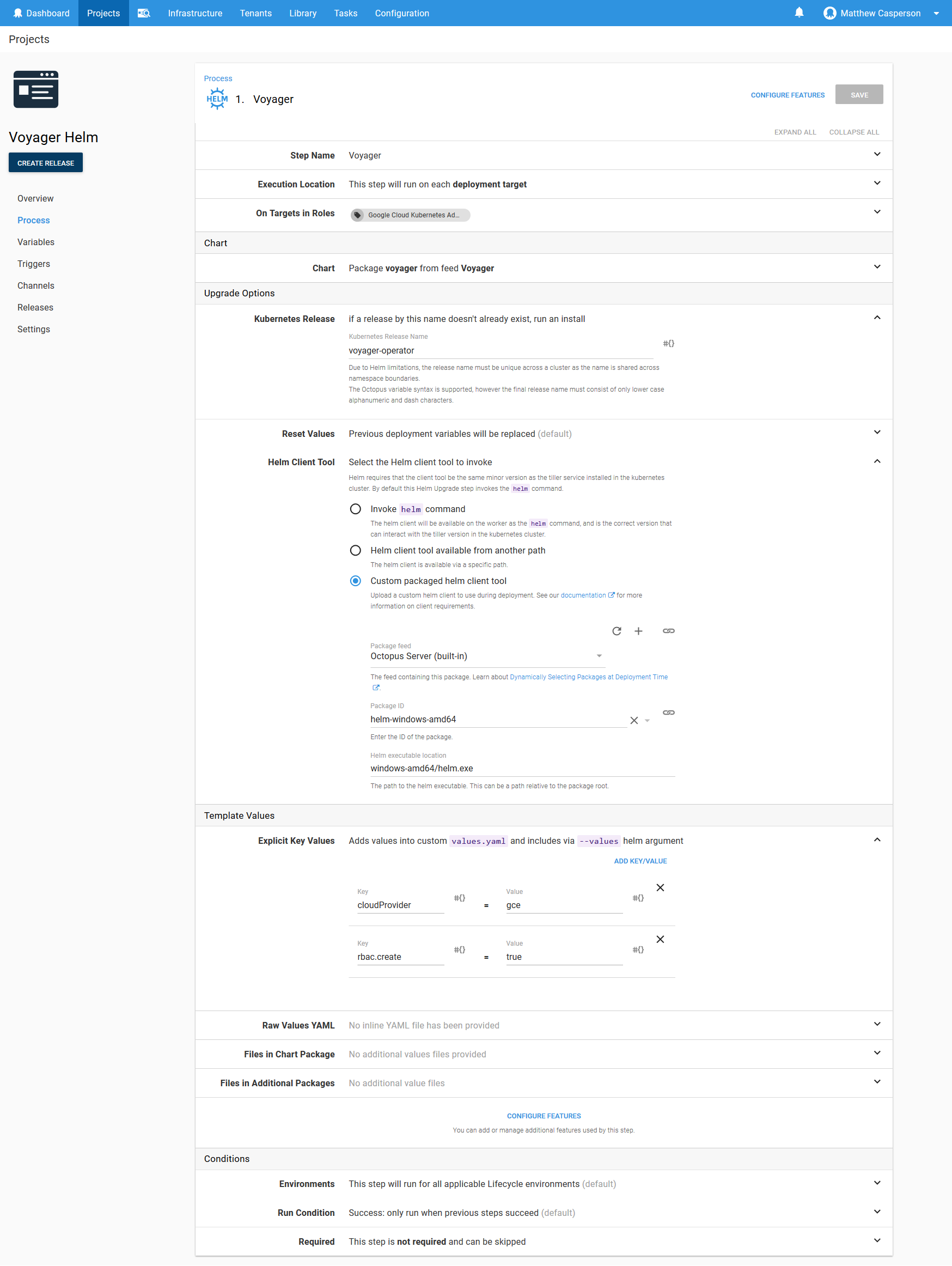 We’ll make use of the Helm step in Octopus itself to deploy the Voyager Helm chart.