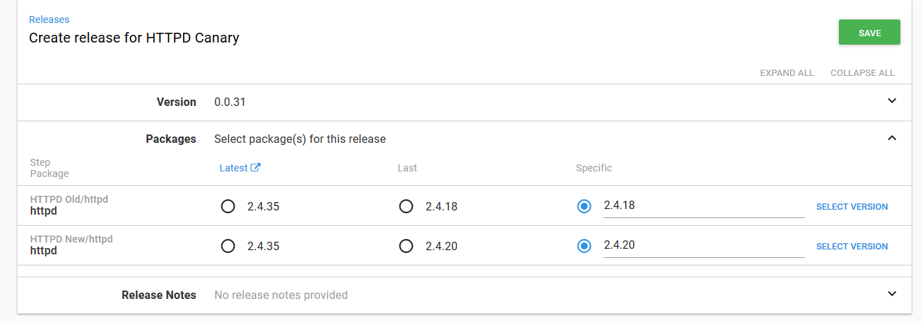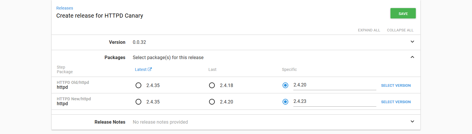 Here I have set the old or previous version to 2.4.18. In this example, this version represents that last stable version that was deployed.