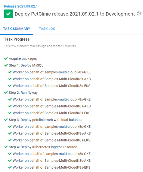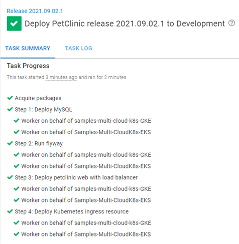 In the screenshot below, you can see the deployment to both targets was successful without changing anything in the deployment process: