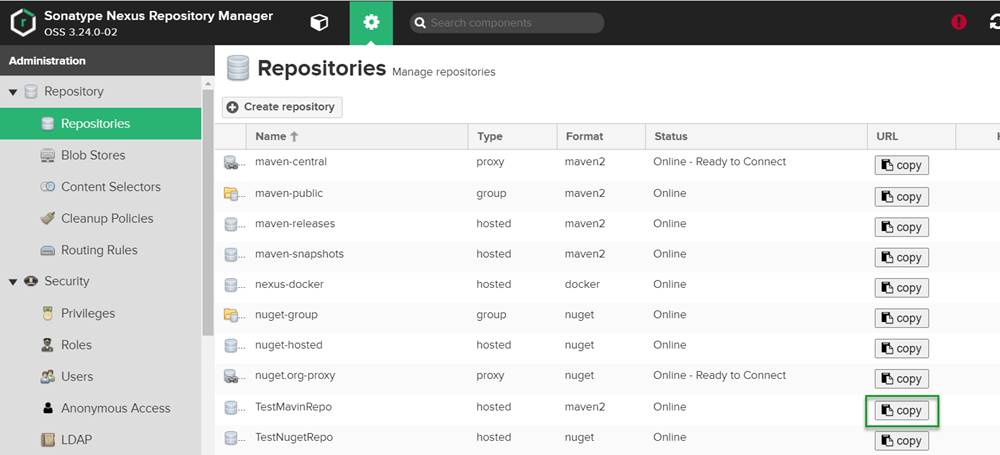 When connecting other repository types to Octopus Deploy, you simply provide the URL from the Copy URL button within Nexus: