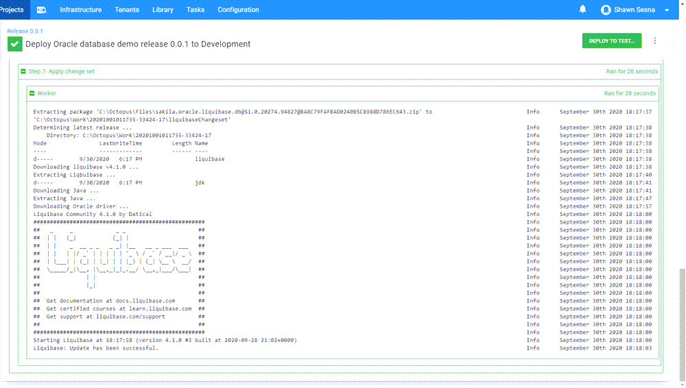 Octopus Deploy supports deploying to many database technologies (Microsoft SQL Server, MariaDB, MySQL, Oracle, PostgreSQL, etc.) as well as many different deployment methods (DACPAC, DbUp, Flyway, Liquibase, RoundhousE, etc.). I hope this post helps you understand how you can use Octopus to deploy to an Oracle database using Liquibase.