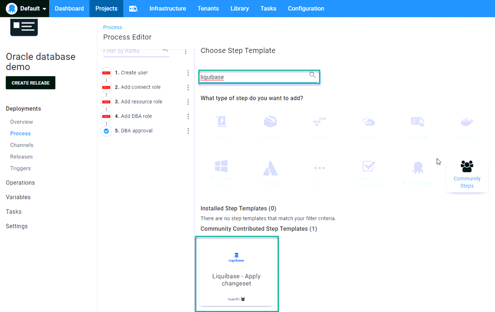 Using Octopus Deploy, you can include the Liquibase step template to automate your deployments to Oracle. This post assumes you’re already familiar with creating a project in Octopus Deploy and will cover the steps specific to Liquibase.