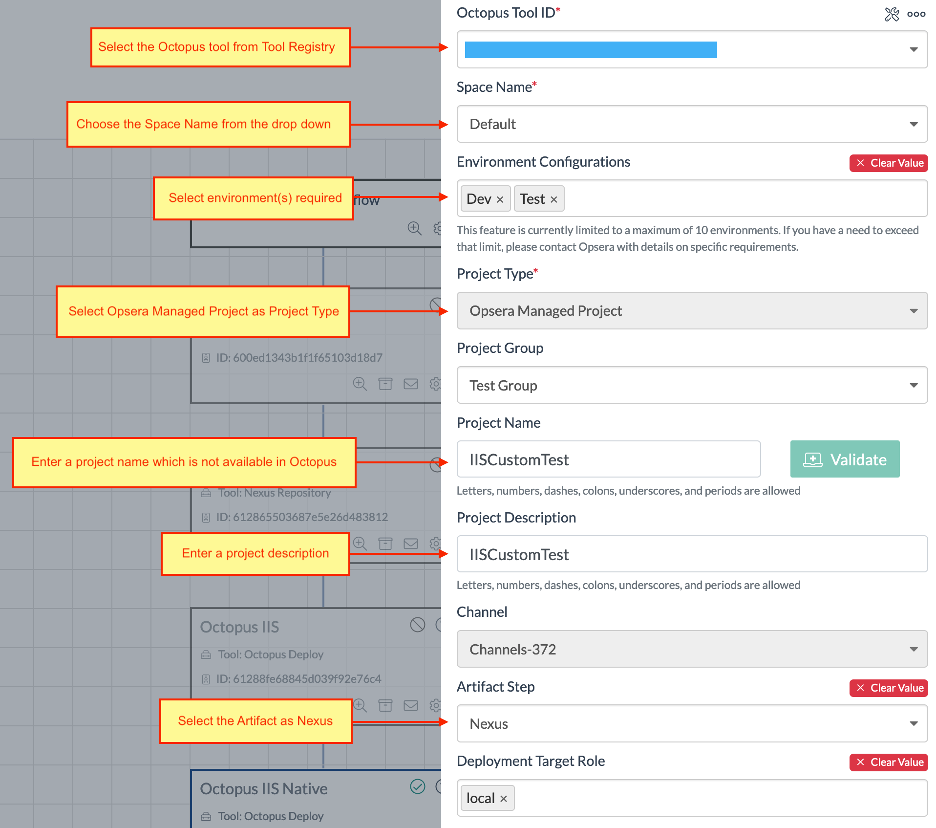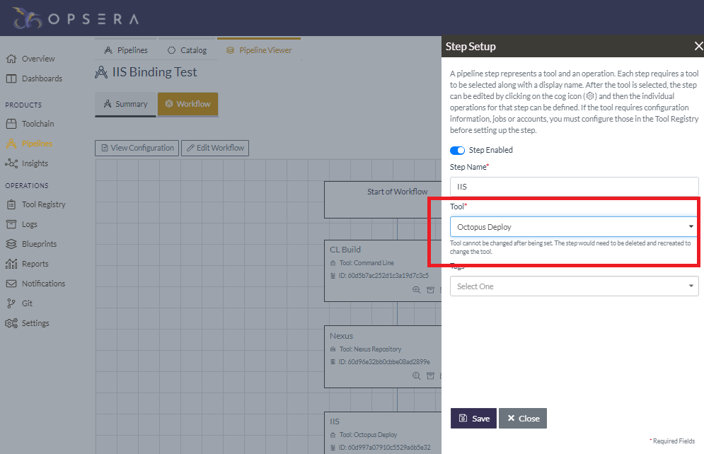 After this step is complete, you can use the Octopus Deploy integration in the pipeline UI of Opsera.